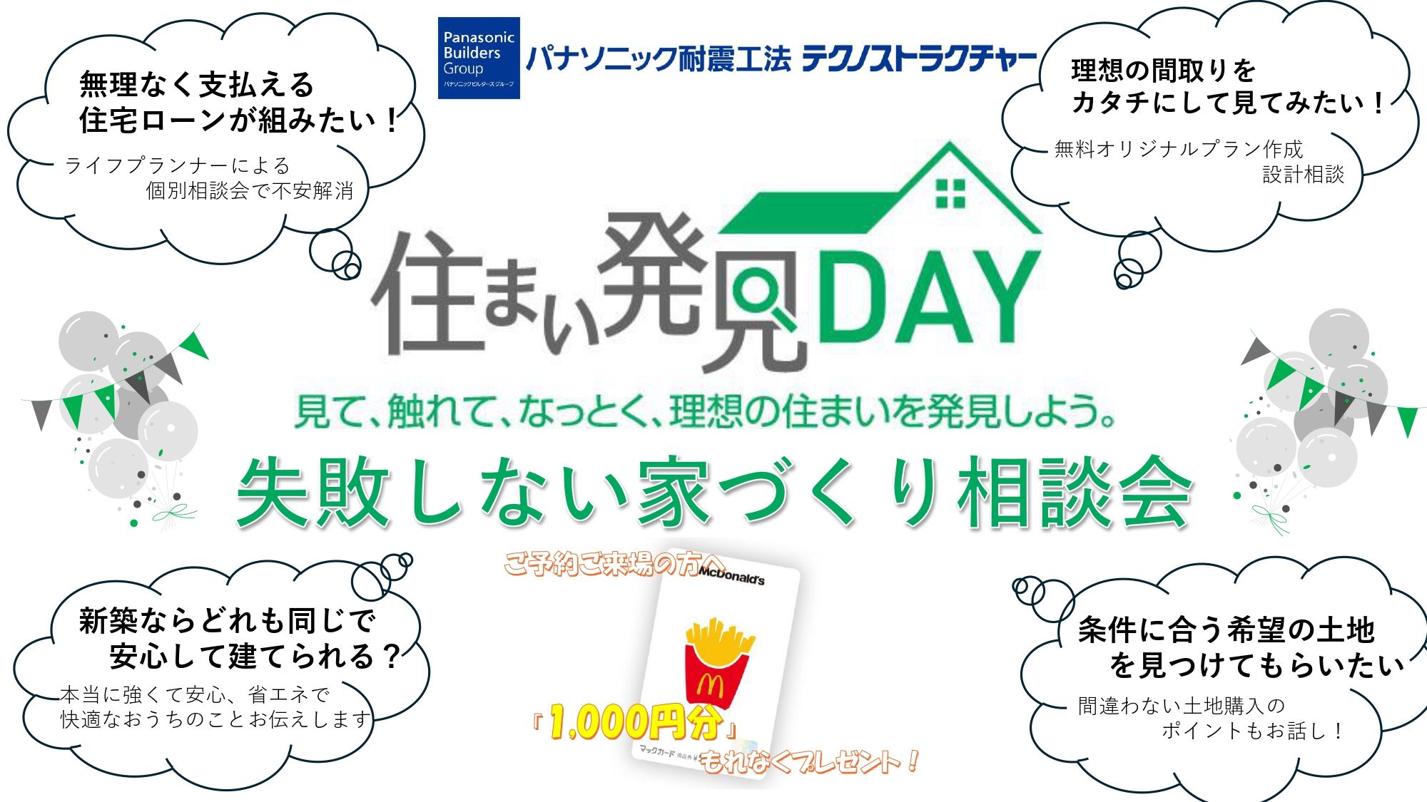 『失敗しない家づくり相談会』を開催していますので、ぜひご家族様でお越し下さい。