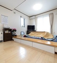 ちょうどよい高さに設定されたLDKの小上がり。天井を上げる事で開放感を増しています。