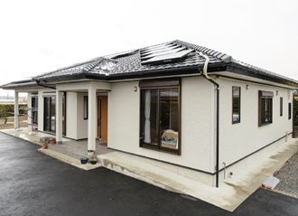 5.8kwの太陽光発電パネルを設置した、シンプルで飽きの来ない外観。