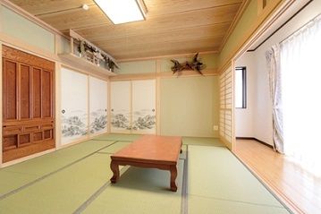 色褪せしない和紙畳と桐や檸といった木材をふんだんに使った和室。