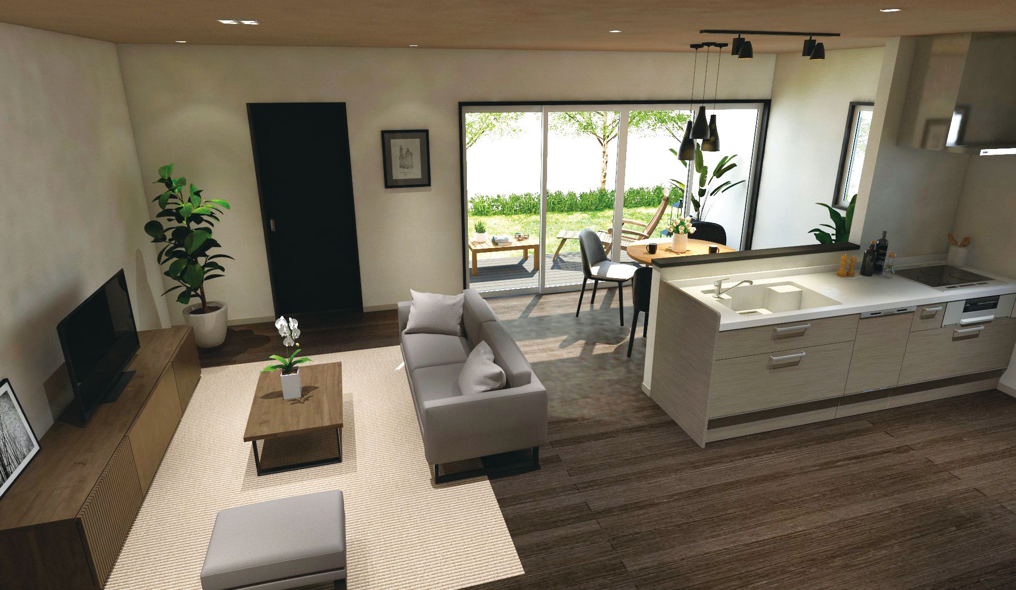 開放的な大空間が魅力のコンパクト住宅。