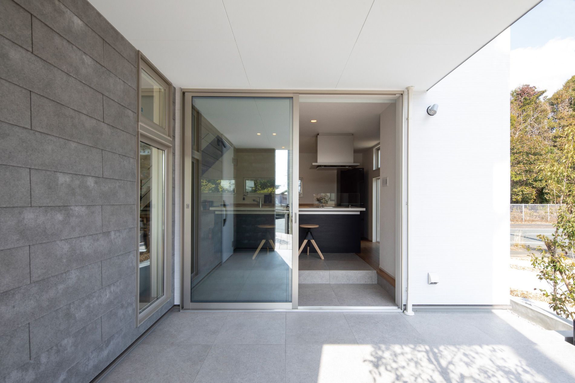大きな軒下空間のある住宅。
