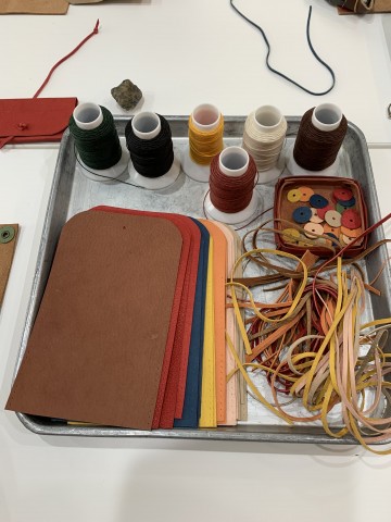 カードケースづくりの材料。ここから自分の好きな色を選ぶのですが選ぶ時間も楽しい!