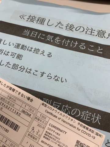 接種会場に入ると流れ作業のように次へ次へと進んで、あっという間にワクチン接種は終わりました。