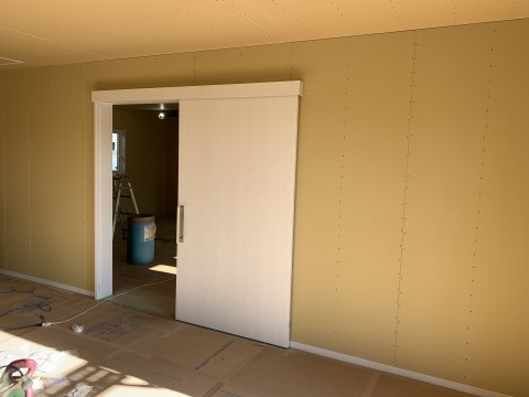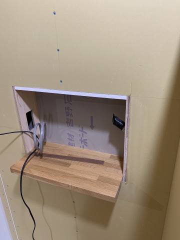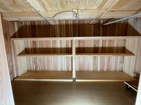 スキップフロアの下部分の収納に棚がつきました。