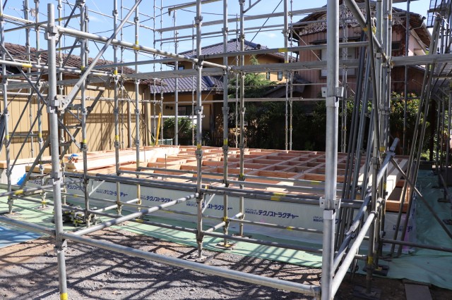 足場工事が終わって上棟を待つばかり!