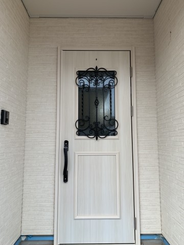 子世帯の玄関 華やかなアイアンの装飾でエレガントな印象おまけに断熱性能が高くカードキーで開閉できる優れもの