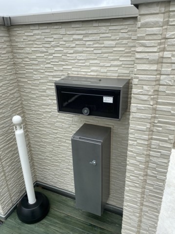 モデルハウスにはインターホンとポストと宅配ボックスが付いた門柱があります