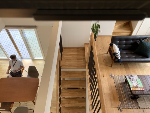 スキップフロアのモデルハウスは空間を壁ではなく高さの違いでゾーニングしているから開放感たっぷりです