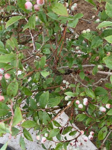 モデルハウスの庭にあるブルーベリーの木がたくさんの実をつけています。