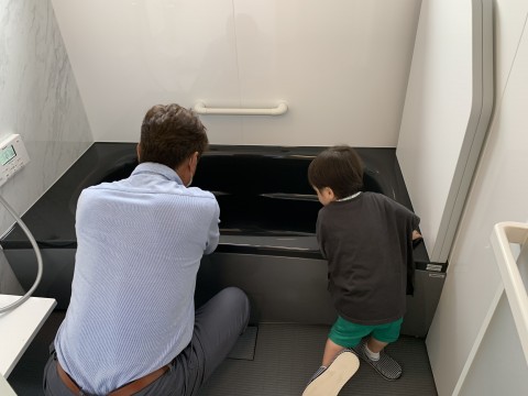 インタビューの間M様のお子様とすっかり仲良くなった文男氏