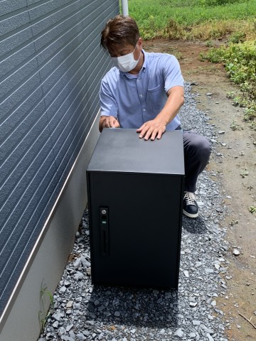 新築のお祝いと見学会のお礼も兼ねて宅配ボックスをプレゼントさせていただきました