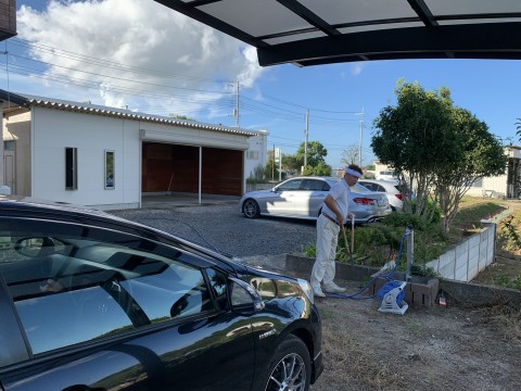 車庫のコンクリートを綺麗に水洗いしたり庭の手入れをしたり働き者の文男氏です!