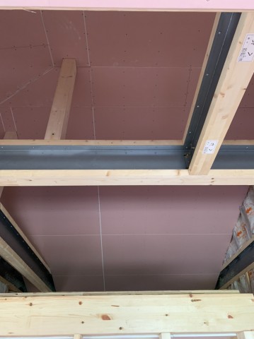 天井部分に貼ってあるピンクのボードがハイクリンボードです。