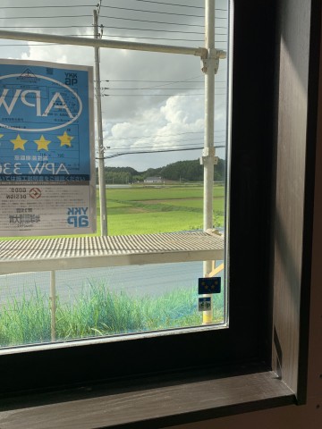窓には星⭐️⭐️⭐️⭐️のシールが貼ってあります。これは省エネ建材等級で最高等級の印!