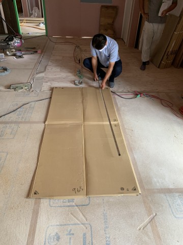現場にテーブルと同じ大きさの段ボールを広げて確認してもらうことにしました