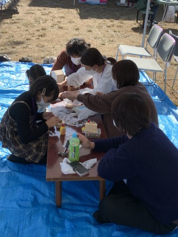 体験コーナーではコースターやカメラ型ペン立てつくりと型抜きも用意しました。