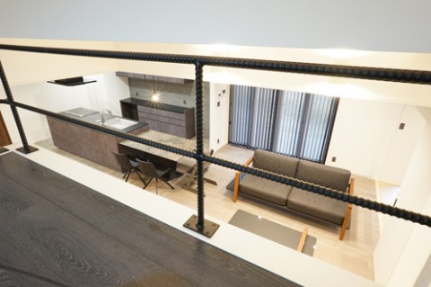 異形鉄筋でつくった手すりがカッコいい。