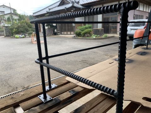 鉄骨屋さんにお願いしてつくってもらったカッコいい手すりはこちら