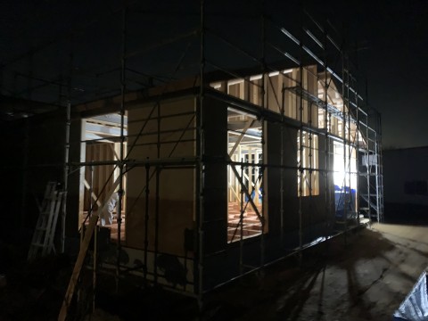 真っ暗なのにどうしたのかな?と思ったら屋根工事を終わらせ建物内で照明つけてお仕事していました。素晴らしいです(^^)v