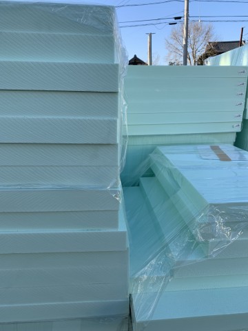 この断熱材を大引きの間に入れていくんですが、超ぴったりなので中々入らず大変なんです。
