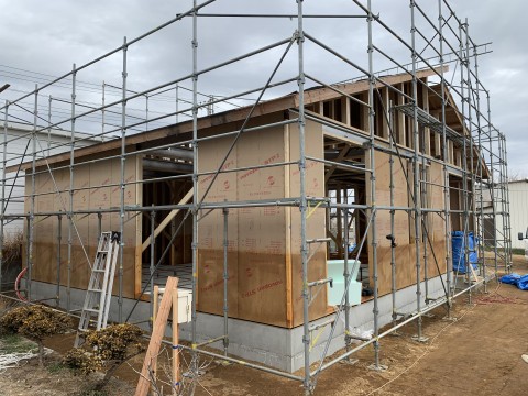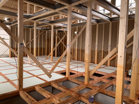 昨日で屋根下地工事が終わったので床をあげる工事です。