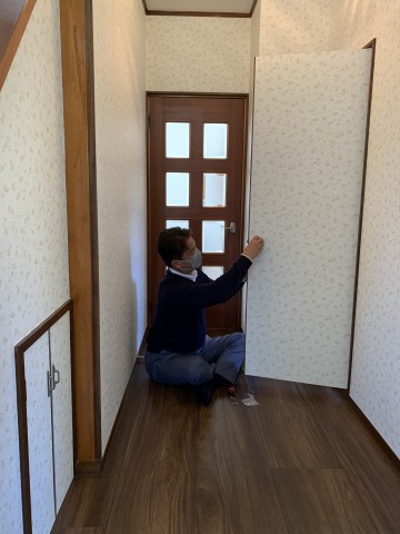 ご挨拶がてらにドアノブ修理 をする文男氏です。