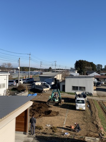 工事着手前に建物の正確な位置を出し、根切りの工程に入ります。