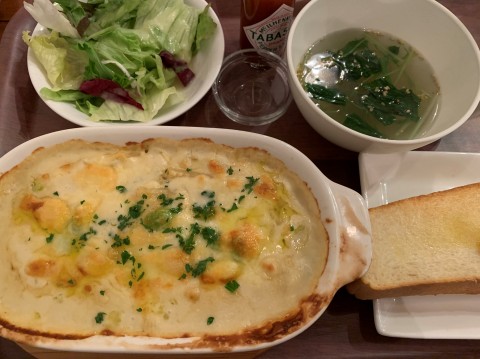 そしてMIROKUでハンバーグが食べたかったはずの私たちが選んだメニューはズワイガニのグラタンとニラ玉塩あんかけ