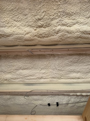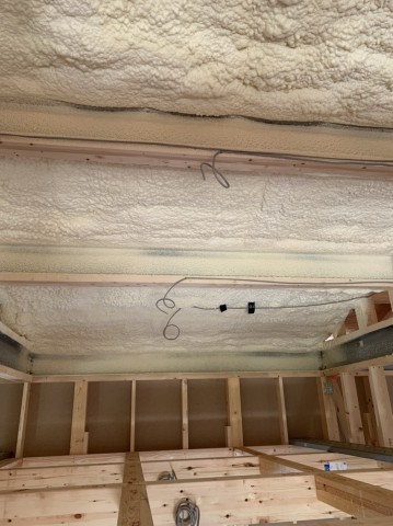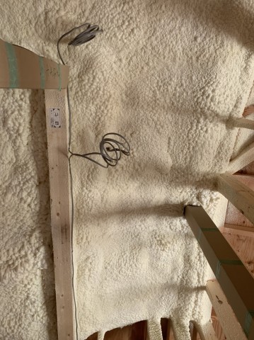 ここは屋根断熱になるので発泡ウレタンフォーム断熱材のフォームライトを施工しています。