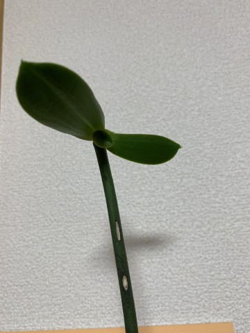 花芽ではなく葉っぱが出てきた胡蝶蘭。