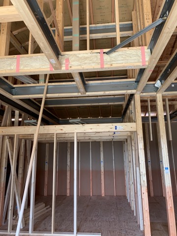 部屋の様子はまだよくわかりませんがテクノストラクチャーの一番の特徴でもある鉄骨の梁が見えますね