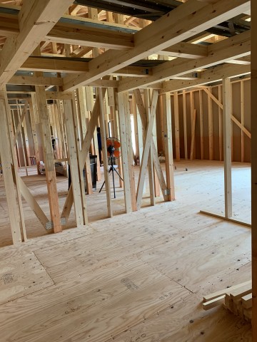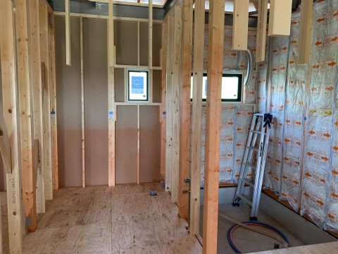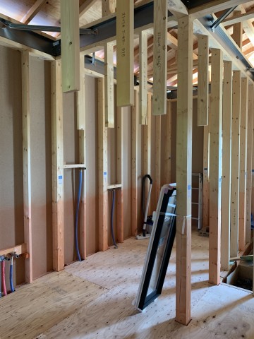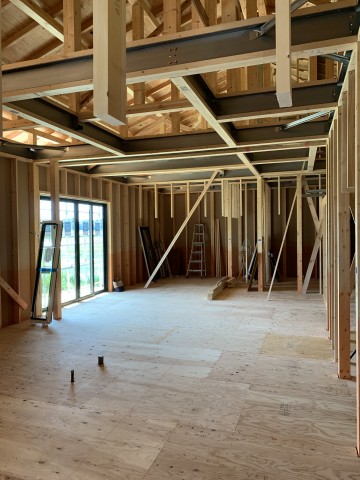これから窓が入り外壁が貼られ、どんどんカッコいい平屋のお家になってきますよ