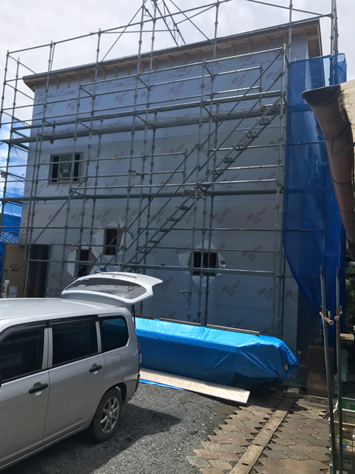 外壁工事が始まったO様邸。「外壁の色が思ってた以上に良かったです。もう大満足です!」と喜びの声をいただきました。まだ外壁をはった外観を撮影してなくて今日はアップできませんが・・・ごめんなさい。