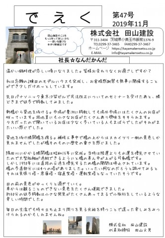 田山建設では毎月手作り情報誌を発行しています。