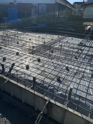 ​私はコンクリートが打設されるともう見れなくなってしまう鉄筋が組まれた状態の基礎を見るのが好きです。