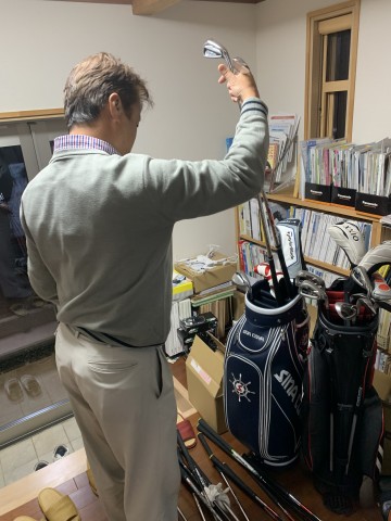 家に帰ってキャディーバッグに大事なアイアンを入れている後ろ姿が嬉しそうだね。