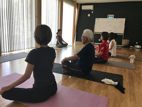 次回ヨガ教室は8月18日(土)10時に杜のプラザで開催予定です。