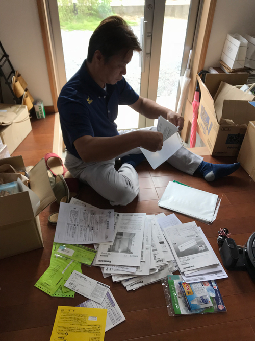 ​お引渡し前、たくさんの取り扱い説明書をファイルしている社長です。