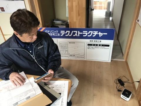 建築現場の看板に書き込む労災保険関係成立票・建設業許可・確認済などをラベルプリンターでつくっています。