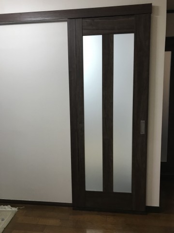 リビング入口の建具をドアから引戸に交換しました。