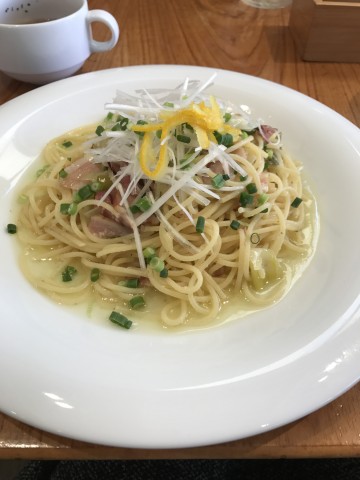 ​今日のたやまんぷく  カフェハウス  ベーコンと柚子胡椒のペペロンチーノ(豊洲)