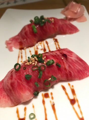 ​今日のたやまんぷく 《牛炙り大トロ握り》 江戸前焼肉 岡本(浅草)