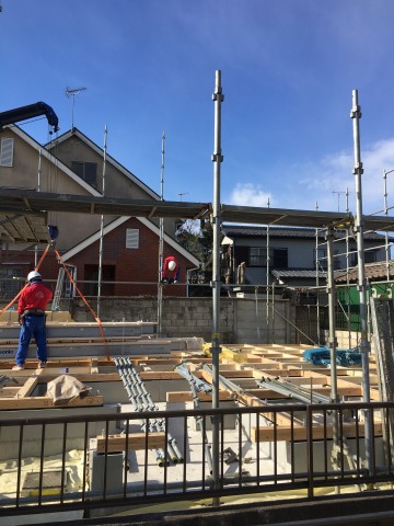 明日の上棟に向けて足場工事中の石岡市T様邸