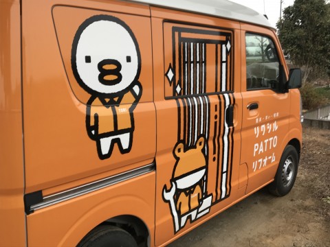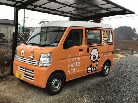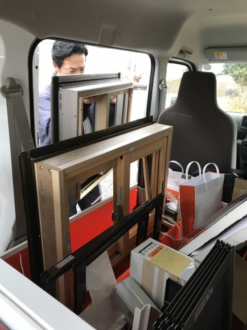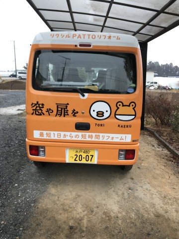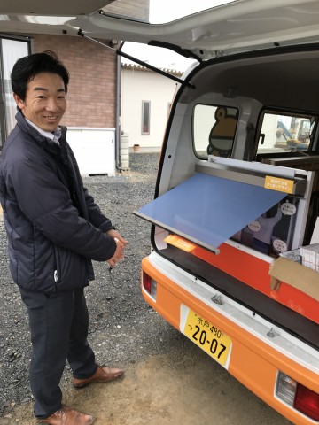 リフォームのイベントに役に立ちますよ~と面白いグッズを乗せた可愛い車で訪問してくださったのでした。