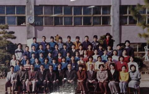 卒業の時の写真。私のクラスはみんなジャージなのはなんでだろう?