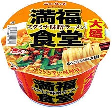 ってCMやってたやつ。蓋にフォークがついてたやつです!今はもうなくなっちゃたのかな~と気になって調べてみたら、ニュータッチから「満腹食堂」っていうカップ麺がでてた。