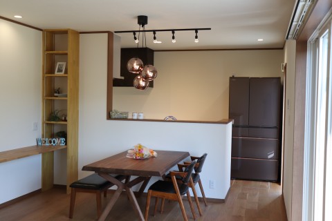造作のカウンターと照明は奥様のこだわりがいっぱい