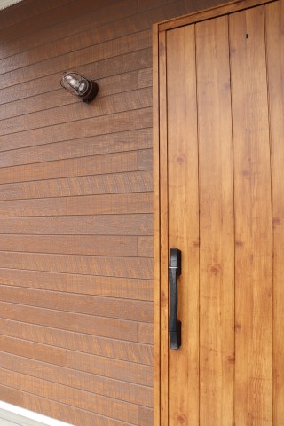 シンプルな玄関ドアとマリンランプが良い雰囲気