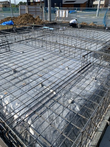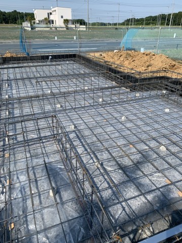 基礎にコンクリートを打つ前に第三者機関によって行われる配筋検査。